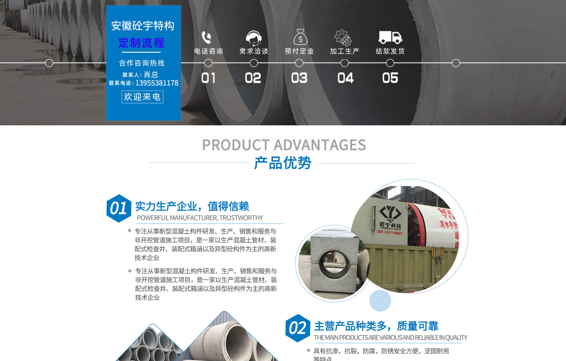 安徽砼宇特構(gòu)科技有限公司創(chuàng)建于2005年10月,注冊(cè)資本3000萬(wàn)元注冊(cè)資金,總部位于安徽省蕪湖市省級(jí)裝配式建筑產(chǎn)業(yè)園區(qū)。是一家以生產(chǎn)混凝土排水管、檢查井、箱涵、住房裝配化及異型砼構(gòu)件為主的高新技術(shù)企業(yè)。生產(chǎn)基地占地60000㎡,現(xiàn)有員工90多人,中、高等級(jí)職稱(chēng)技術(shù)人員20多人,具有試驗(yàn)室,嚴(yán)格控制產(chǎn)品質(zhì)量,使產(chǎn)品出廠(chǎng)合格率高。 公司共取得了國(guó)家發(fā)明4項(xiàng),實(shí)用新型發(fā)明9項(xiàng),受理發(fā)明9項(xiàng),安徽省科技成果1項(xiàng),安徽省高新技術(shù)產(chǎn)品5項(xiàng),安徽省科技新產(chǎn)品5項(xiàng),是安徽省專(zhuān)精特新中小企業(yè)、蕪湖市科技創(chuàng)新“小巨人”企業(yè),參與制定建材行業(yè)標(biāo)準(zhǔn)3項(xiàng)《預(yù)制混凝土檢查井》JC/T 2241-2014)、GB/T11836《混凝土和鋼筋混泥土排水管》、行業(yè)《預(yù)制裝配化混凝土箱涵》標(biāo)準(zhǔn)的制定。是安徽省內(nèi)水泥制品砼構(gòu)件和排水管行業(yè)的創(chuàng)新型企業(yè)。 公司具有建筑工程施工總承包二級(jí)、下設(shè)的全資子公司(全一建設(shè))具有市政三級(jí)資質(zhì)。同時(shí)我公司從事城市園林綠化、市政公用工程...